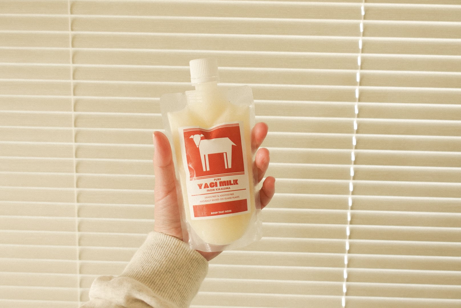 鹿児島・喜界島のグローリーファームさんに特別につくっていただいた、100%ナチュラルなヤギミルク。