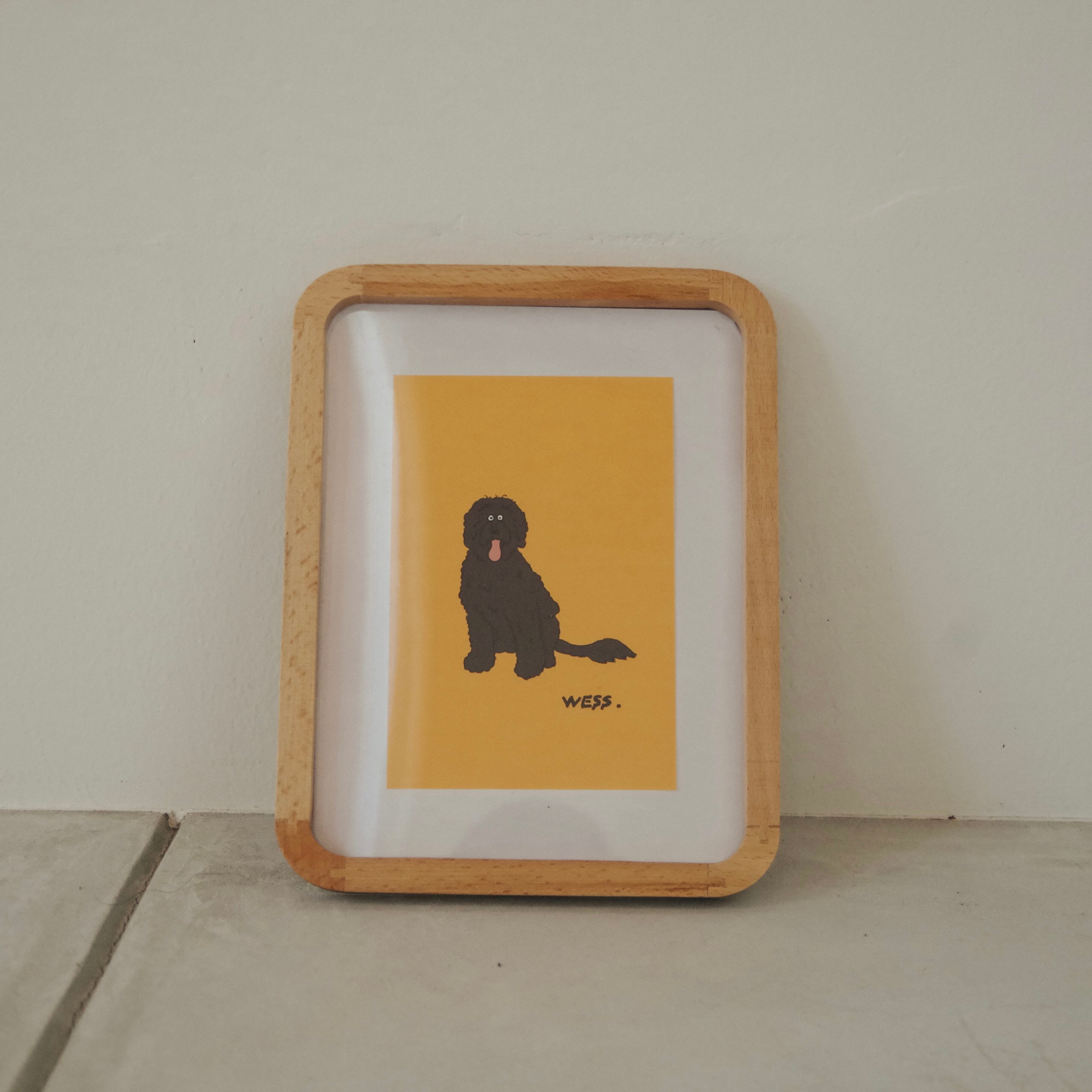 また、オーダーフォームにて送っていただくお写真を参考に、特徴を捉えた似顔絵を描きます。リアルなタッチではなく、海外のキャラクターのようなポップで可愛いわんちゃんに変身!