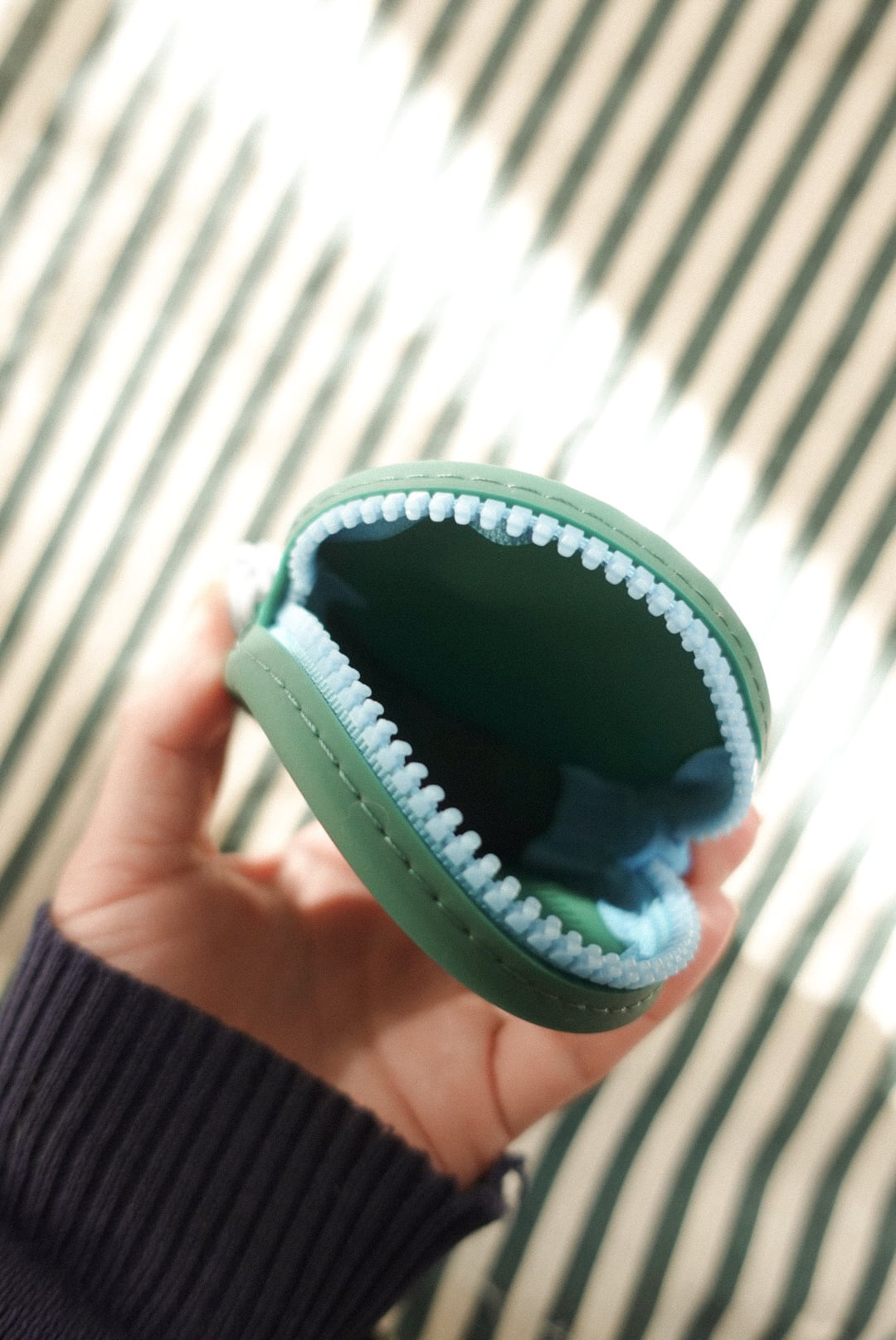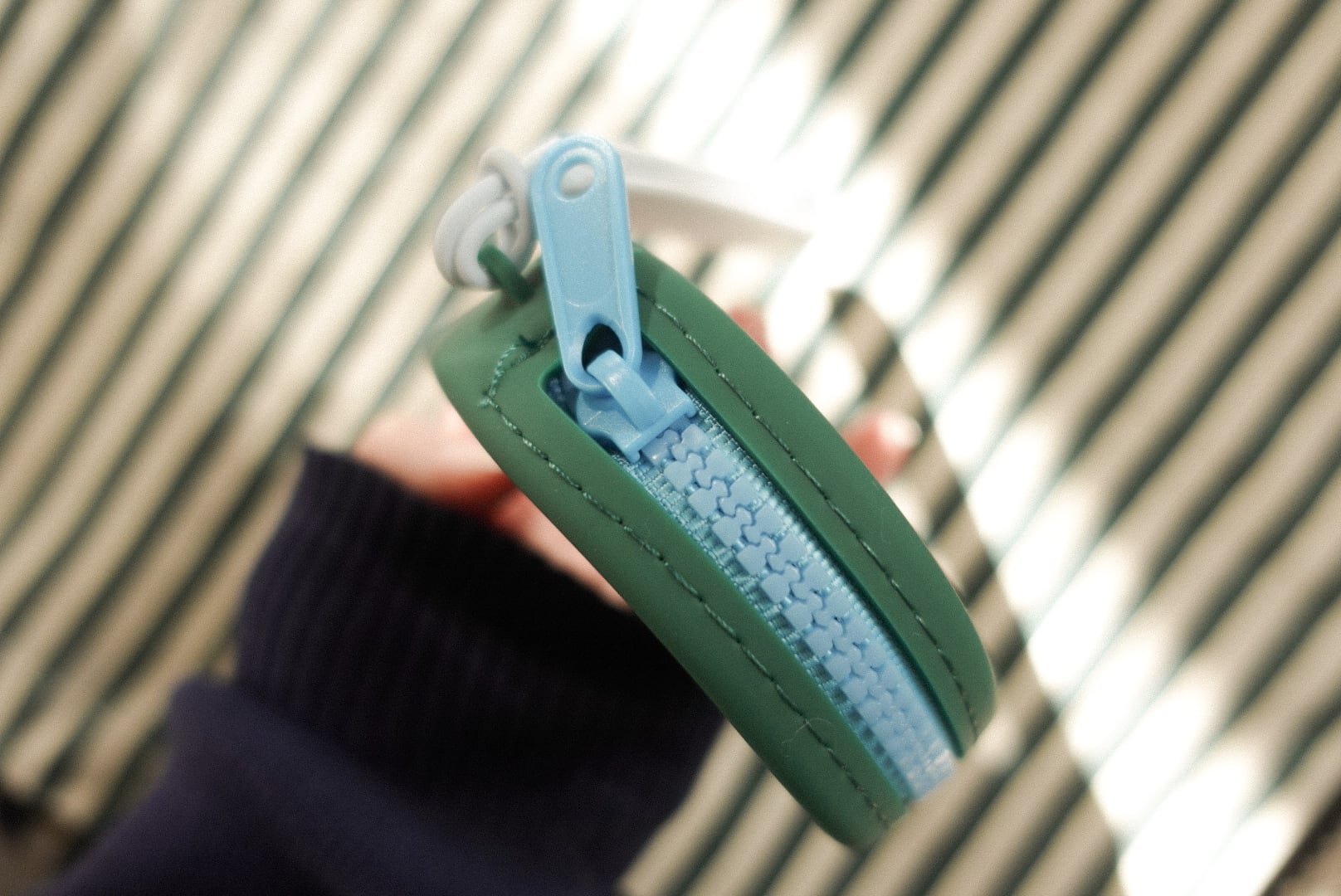 お散歩バッグにつけて、おやつ入れや急な用事のためのコイン入れに。